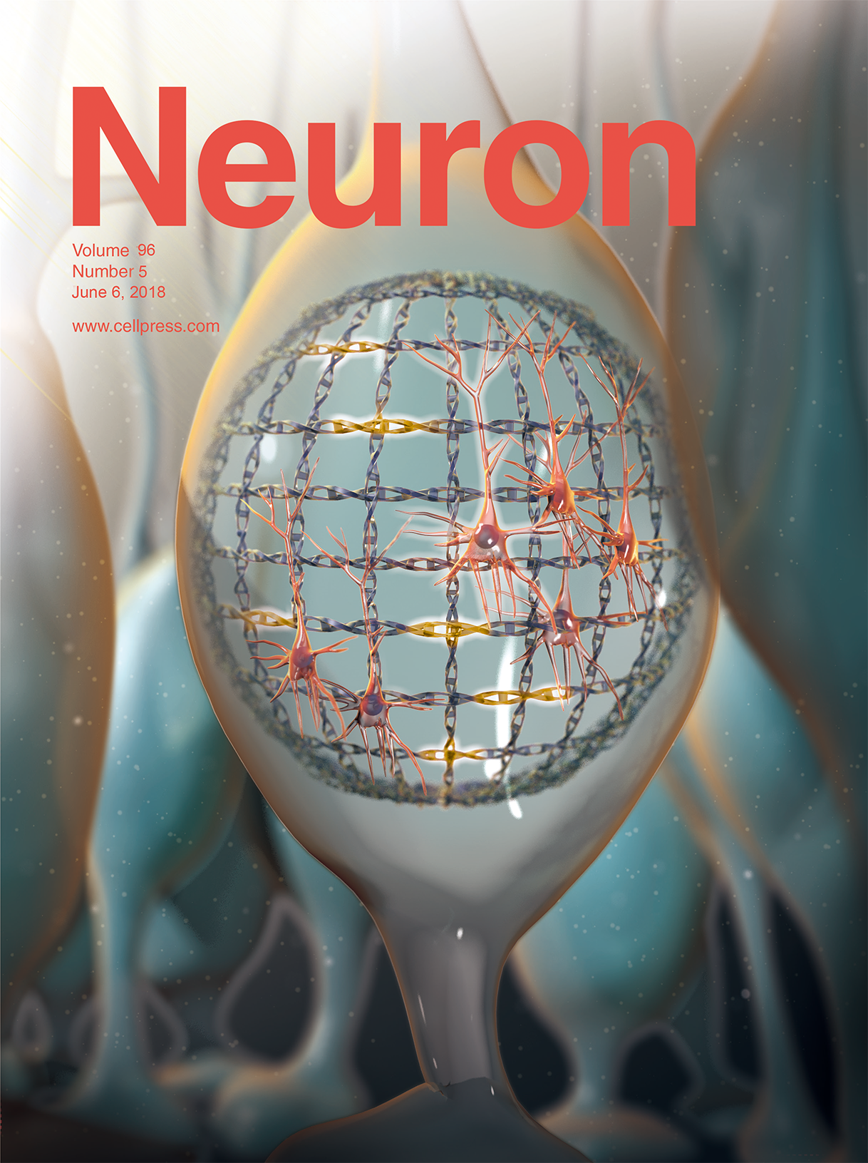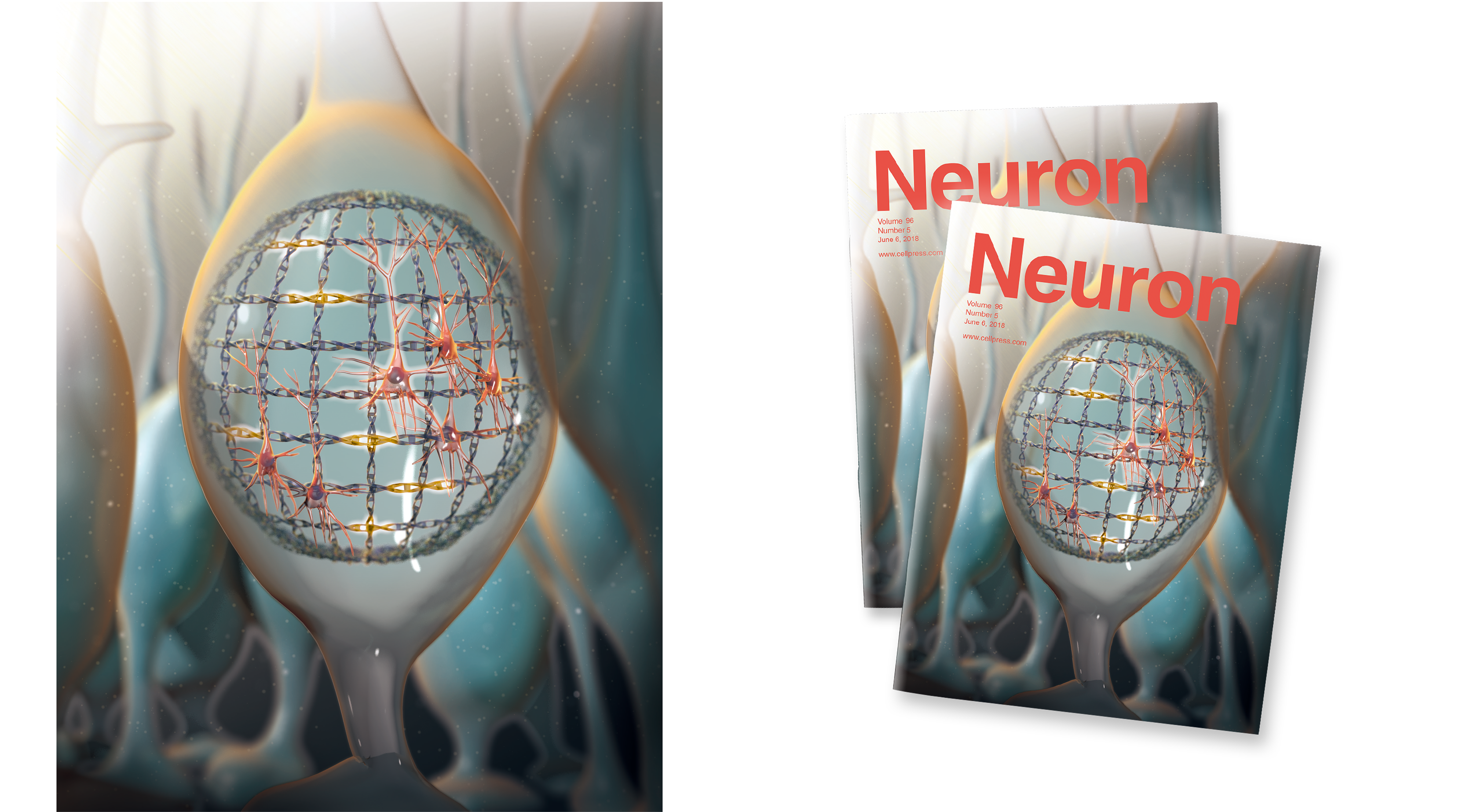 This illustration accompany a manuscript "The Epigenetic State of PRDM16-Regulated Enhancers in Radial Glia Controls Cortical Neuron Position" published in Neuron. The illustration depicts the finding that the DNA enhancers in the radial glia determines the location of the cortical neurons.