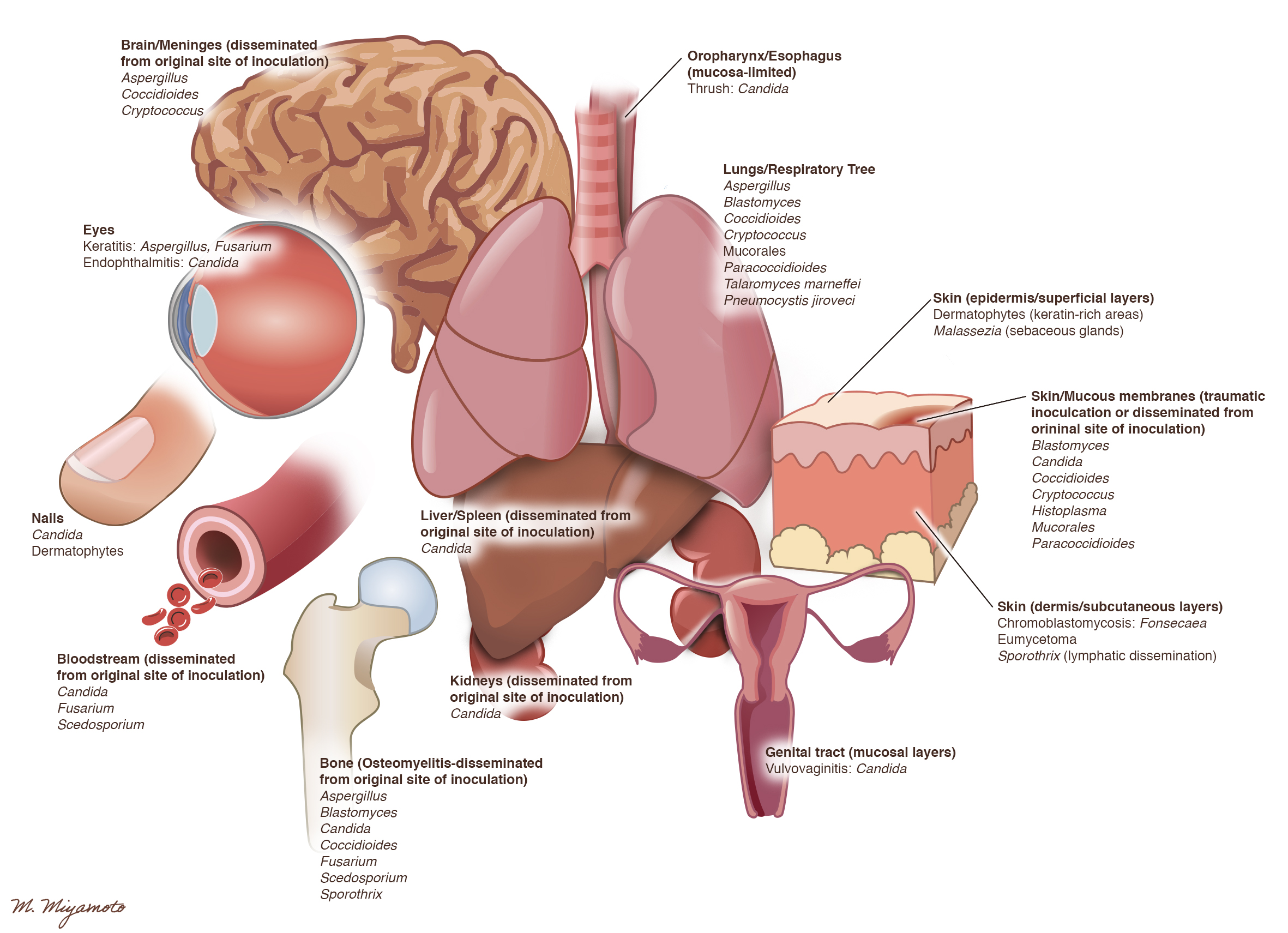 These scientific figures accompany a review article "Immunity against Fungi" in the JCI insight, published June 6, 2017. These are created to help explain the mechanism of antifungal immune response as well as depicting anatomic sites that are commonly affected by the fungal genera. Read full article Read full article here.